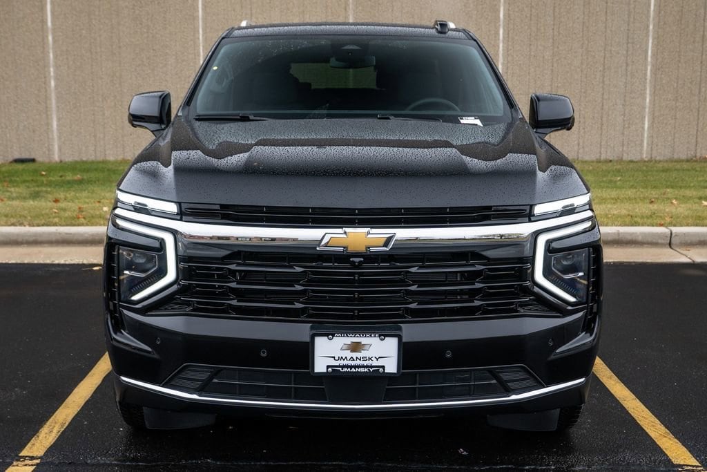 Tahoe LS, 4WD, 2-Way Power Driver Lumbar Seat Adjuster, 2-Way Power Front Passenger Lumbar Seat Adjuster, 3-Spoke Wrapped Steering Wheel, 3.23 Rear Axle Ratio, 3rd Row Manual 60/40 Split-Folding Bench Seats, 3rd row seats: split-bench, 4-Wheel Disc Brakes, 6 Speakers, 6-Speaker Audio System Feature, 6-Way Power Front Passenger Seat Adjuster, 8-Way Power Driver Seat Adjuster, ABS brakes, Air Conditioning, Alloy wheels, AM/FM radio: SiriusXM with 360L, Apple CarPlay/Android Auto, Auto High-beam Headlights, Automatic temperature control, Brake assist, Bumpers: body-color, Color-Keyed Carpeting Floor Covering, Compass, Delay-off headlights, Driver door bin, Driver vanity mirror, Dual front impact airbags, Dual front side impact airbags, Electronic Stability Control, Emergency communication system: OnStar and Chevrolet connected services capable, Exterior Parking Camera Rear, Four wheel independent suspension, Front anti-roll bar, Front Bucket Seats, Front Center Armrest, Front dual zone A/C, Front reading lights, Fully automatic headlights, Heated door mirrors, Illuminated entry, Key Card, Low tire pressure warning, Navigation system: Google built-in compatibility (select service plan required, terms and limitations apply), Occupant sensing airbag, Outside temperature display, Overhead airbag, Overhead console, Panic alarm, Passenger door bin, Passenger vanity mirror, Power door mirrors, Power driver seat, Power passenger seat, Power steering, Power windows, Premium audio system: Chevrolet Infotainment 3, Premium Cloth Seat Trim, Premium Smooth Ride Suspension, Radio data system, Radio: 17.7 Diagonal Advanced Color LCD Display, Rain sensing wipers, Rear air conditioning, Rear anti-roll bar, Rear reading lights, Rear seat center armrest, Rear window defroster, Rear window wiper, Remote keyless entry, Remote Start, Security system, Speed control, Speed-sensing steering, Split folding rear seat, Spoiler, Steering wheel mounted audio controls, Tachometer, Telescoping steering wheel, Tilt steering wheel, Traction control, Trip computer, USB Ports, Variably intermittent wipers, Voltmeter, and Wheels: 18 x 8.5 Bright Silver Painted Aluminum.