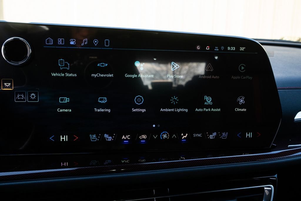 AWD, 12 Speakers, 3rd row seats: split-bench, 4-Wheel Disc Brakes, 6-Way Power Front Passenger Seat Adjuster, 8-Way Power Driver Seat Adjuster, ABS brakes, Air Conditioning, Alloy wheels, AM/FM radio: SiriusXM with 360L, Apple CarPlay/Android Auto, Auto High-beam Headlights, Auto tilt-away steering wheel, Auto-dimming door mirrors, Automatic temperature control, Bose Premium 12-Speaker Audio System Feature, Brake assist, Bumpers: body-color, Child-Seat-Sensing Airbag, Compass, Delay-off headlights, Driver 4-Way Power Lumbar Seat Adjuster, Driver door bin, Driver vanity mirror, Dual front impact airbags, Dual front side impact airbags, Electronic Stability Control, Emergency communication system: OnStar, Exterior Parking Camera Rear, Four wheel independent suspension, Front anti-roll bar, Front Bucket Seats, Front Center Armrest, Front dual zone A/C, Front Passenger 4-Way Power Lumbar Seat Adjuster, Front reading lights, Fully automatic headlights, Garage door transmitter, Heated door mirrors, Heated front seats, Heated rear seats, Heated steering wheel, Illuminated entry, Low tire pressure warning, Memory seat, Navigation System, Occupant sensing airbag, Outside temperature display, Overhead airbag, Overhead console, Panic alarm, Passenger door bin, Passenger vanity mirror, Perforated Leather-Appointed Seat Trim, Power door mirrors, Power driver seat, Power Liftgate, Power passenger seat, Power steering, Power windows, Radio data system, Rain sensing wipers, Rear air conditioning, Rear anti-roll bar, Rear reading lights, Rear window defroster, Rear window wiper, Remote keyless entry, Security system, Speed control, Speed-sensing steering, Spoiler, Sport steering wheel, Steering wheel memory, Steering wheel mounted audio controls, Tachometer, Telescoping steering wheel, Tilt steering wheel, Traction control, Trip computer, Turn signal indicator mirrors, Variably intermittent wipers, Ventilated front seats, Voltmeter, and Wheels: 22 High Gloss Black Painted Aluminum. All Sale Prices exclude tax, title, license, and $399 dealer service fee. All Prices are after all applicable rebates. Extra rebates are available, see Sales Department for more details. Offers subject to change without notice. Come to Andrew Chevrolet for complete details. Price includes: $1500 - Customer Cash. Exp. 01/02/2026