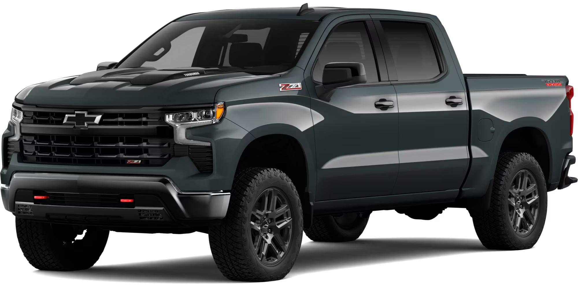 For drivers who want off-road capability at a value, the Custom Trail Boss adds a factory lift, Z71 off-road suspension, skid plates, and 18-inch black wheels with all-terrain tires. Red recovery hooks and black exterior trim emphasize its rugged personality.