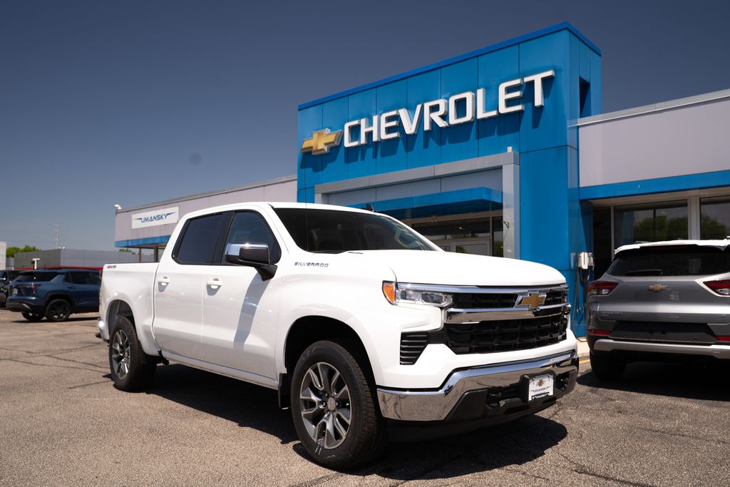 Summit White 2025 Chevrolet Silverado 1500 LT 4WD 8-Speed Automatic 2.7L I4 Turbocharged DOHC 16V LEV3-SULEV30 310hp Experience the strength, innovation, and reliability of the 2025 Chevrolet Silverado, now available at Umansky Chevrolet in Milwaukee, Wisconsin your trusted destination for new Chevy trucks in a highly competitive dealership market. This full-size pickup is built to outperform, featuring a powerful 2.7L TurboMax engine with 310 horsepower and 430 lb-ft of torque, plus available V8 and Duramax diesel options for unmatched towing capacity up to 13,200 lbs. Inside, the 2025 Silverado offers a tech-forward cabin with a large touchscreen display, wireless Apple CarPlay and Android Auto, and advanced safety features including Lane Keep Assist and Forward Collision Alert. Whether you're hauling on the job site, towing for weekend getaways, or navigating the streets of Milwaukee, the Silverado delivers premium capability and durability. Visit Umansky Chevrolet, your go-to Chevy dealership in Milwaukee, to explore unbeatable pricing, exceptional service, and one of the best selections of new Chevrolet trucks in southeastern Wisconsin., Silverado 1500 LT, 4WD.
