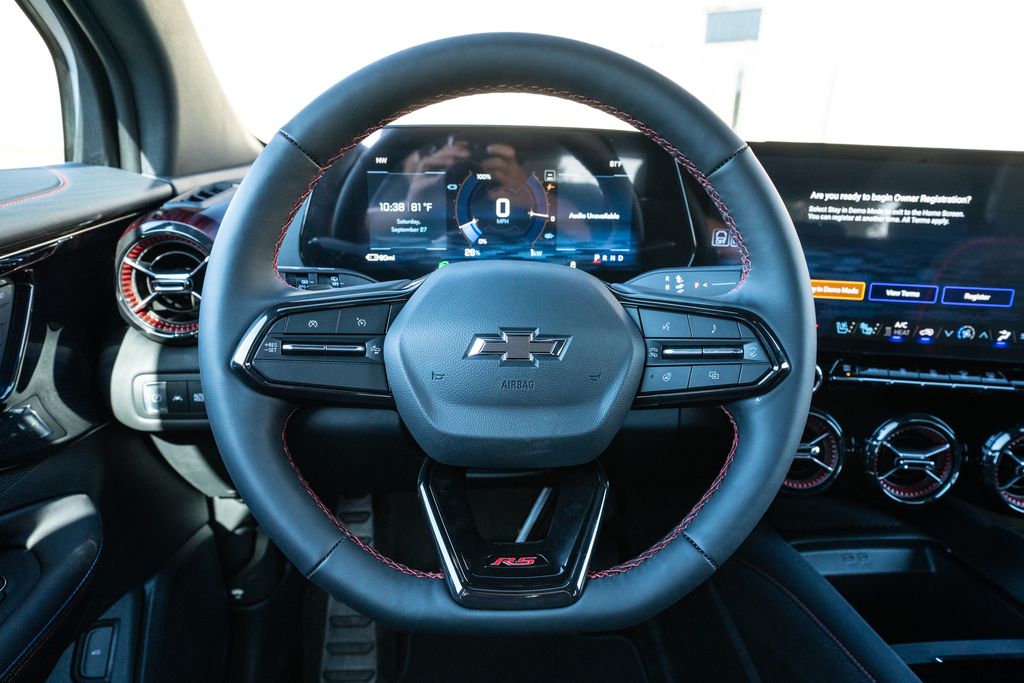Preferred Equipment Group 1RS, Blazer EV RS, 2-Way Front Passenger Power Lumbar Seat Adjuster, 2-Way Power Driver Lumbar Seat Adjuster, 4-Wheel Disc Brakes, 6-Speaker Audio System Feature, 6-Way Power Front Passenger Seat Adjuster, 8 Speakers, 8-Way Power Driver Seat Adjuster, ABS brakes, Air Conditioning, Alloy wheels, AM/FM radio: SiriusXM with 360L, Auto High-beam Headlights, Auto-dimming door mirrors, Automatic temperature control, Brake assist, Bumpers: body-color, Compass, Delay-off headlights, Driver door bin, Driver vanity mirror, Dual front impact airbags, Dual front side impact airbags, Electronic Stability Control, Emergency communication system: OnStar and Chevrolet connected services capable, Four wheel independent suspension, Front anti-roll bar, Front Bucket Seats, Front Center Armrest, Front dual zone A/C, Front reading lights, Fully automatic headlights, Garage door transmitter, Heated door mirrors, Heated front seats, Heated steering wheel, Illuminated entry, Knee airbag, Low tire pressure warning, Memory seat, Navigation System, Occupant sensing airbag, Outside temperature display, Overhead airbag, Overhead console, Panic alarm, Passenger door bin, Passenger vanity mirror, Perforated Suede/Evotex Seat Trim, Power door mirrors, Power driver seat, Power Liftgate, Power passenger seat, Power steering, Power windows, Radio: 17.7" Diagonal Advanced Color LCD Display, Rain sensing wipers, Rear anti-roll bar, Rear reading lights, Rear seat center armrest, Rear window defroster, Rear window wiper, Remote keyless entry, Security system, Speed control, Split folding rear seat, Spoiler, Sport steering wheel, Steering wheel mounted audio controls, Telescoping steering wheel, Tilt steering wheel, Traction control, Trip computer, Turn signal indicator mirrors, Variably intermittent wipers, Ventilated front seats, and Wheels: 21" Machined-Face Aluminum. All Sale Prices exclude tax, title, license, and $499 dealer service fee. All Prices are after all applicable rebates. Extra rebates are available, see Sales Department for more details. Offers subject to change without notice. Come to Andrew Chevrolet for complete details. Price includes: $1000 - Customer Cash. Exp. 03/31/2026