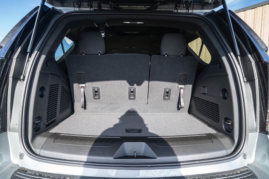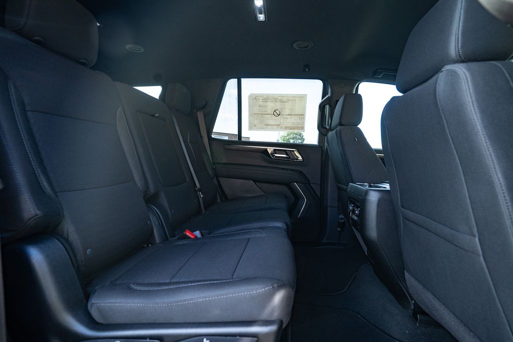 License Plate Front Mounting Package, Preferred Equipment Group 1LS (3-Spoke Wrapped Steering Wheel, 3rd Row Manual 60/40 Split-Folding Bench Seats, Color-Keyed Carpeting Floor Covering, Front Bucket Seats, Key Card, Remote Start, and USB Ports), 4WD, 2-Way Power Driver Lumbar Seat Adjuster, 2-Way Power Front Passenger Lumbar Seat Adjuster, 3.23 Rear Axle Ratio, 3rd row seats: split-bench, 4-Wheel Disc Brakes, 6 Speakers, 6-Speaker Audio System Feature, 6-Way Power Front Passenger Seat Adjuster, 8-Way Power Driver Seat Adjuster, ABS brakes, Air Conditioning, Alloy wheels, AM/FM radio: SiriusXM with 360L, Apple CarPlay/Android Auto, Auto High-beam Headlights, Automatic temperature control, Brake assist, Bumpers: body-color, Compass, Delay-off headlights, Driver door bin, Driver vanity mirror, Dual front impact airbags, Dual front side impact airbags, Electronic Stability Control, Emergency communication system: OnStar and Chevrolet connected services capable, Exterior Parking Camera Rear, Four wheel independent suspension, Front anti-roll bar, Front Center Armrest, Front dual zone A/C, Front reading lights, Fully automatic headlights, Heated door mirrors, Illuminated entry, Low tire pressure warning, Navigation system: Google built-in compatibility (select service plan required, terms and limitations apply), Occupant sensing airbag, Outside temperature display, Overhead airbag, Overhead console, Panic alarm, Passenger door bin, Passenger vanity mirror, Power door mirrors, Power driver seat, Power passenger seat, Power steering, Power windows, Premium audio system: Chevrolet Infotainment 3, Premium Cloth Seat Trim, Premium Smooth Ride Suspension, Radio data system, Radio: 17.7" Diagonal Advanced Color LCD Display, Rain sensing wipers, Rear air conditioning, Rear anti-roll bar, Rear reading lights, Rear seat center armrest, Rear window defroster, Rear window wiper, Remote keyless entry, Security system, Speed control, Speed-sensing steering, Split folding rear seat, Spoiler, Steering wheel mounted audio controls, Tachometer, Telescoping steering wheel, Tilt steering wheel, Traction control, Trip computer, Variably intermittent wipers, Voltmeter, and Wheels: 18" x 8.5" Bright Silver Painted Aluminum.