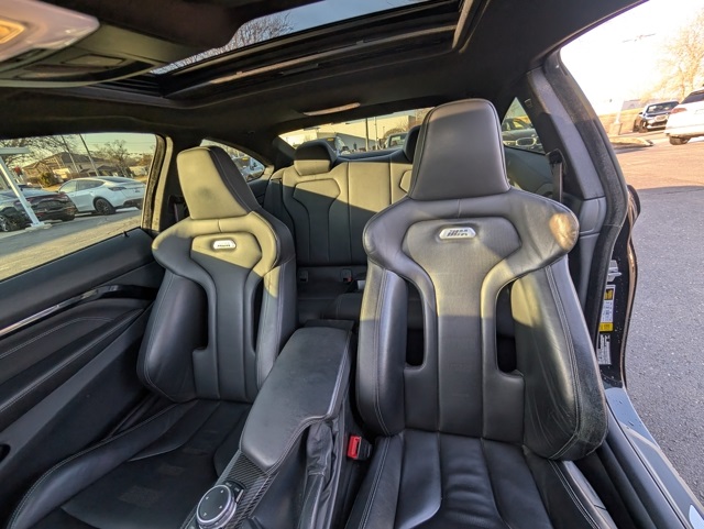 Competition Package (Adaptive M Suspension, BMW Individual High-Gloss Shadow Line, Lumbar Support Delete, and Wheels: 20" x 9" Front/20" x 10" Rear), Competition Package (7MA), Driver Assistance Plus (Active Blind Spot Detection, Active Driving Assistant, Side & Top View Cameras, and Speed Limit Info), M Competition Package, M4 Competition, 2D Coupe, 3.0L I6, Black Sapphire Metallic, Black Leather, ABS brakes, Alloy wheels, Cloth/Leather Upholstery, DVD-Audio, Electronic Stability Control, Emergency communication system, Front dual zone A/C, Heated door mirrors, Heated front seats, Heated Front Sport Seats, High intensity discharge headlights: Bi-xenon, Illuminated entry, Low tire pressure warning, Navigation System, Remote keyless entry, Traction control, 16 Speakers, 4-Wheel Disc Brakes, Air Conditioning, AM/FM radio: SiriusXM, Auto-dimming door mirrors, Auto-dimming Rear-View mirror, Automatic temperature control, Brake assist, Bumpers: body-color, CD player, Delay-off headlights, Driver door bin, Driver vanity mirror, Dual front impact airbags, Dual front side impact airbags, Four wheel independent suspension, Front anti-roll bar, Front Bucket Seats, Front Center Armrest, Front reading lights, Fully automatic headlights, Garage door transmitter, harman/kardon Surround Sound System, harman/kardon® Speakers, Knee airbag, Leather Shift Knob, Leather steering wheel, Memory seat, Occupant sensing airbag, Outside temperature display, Over