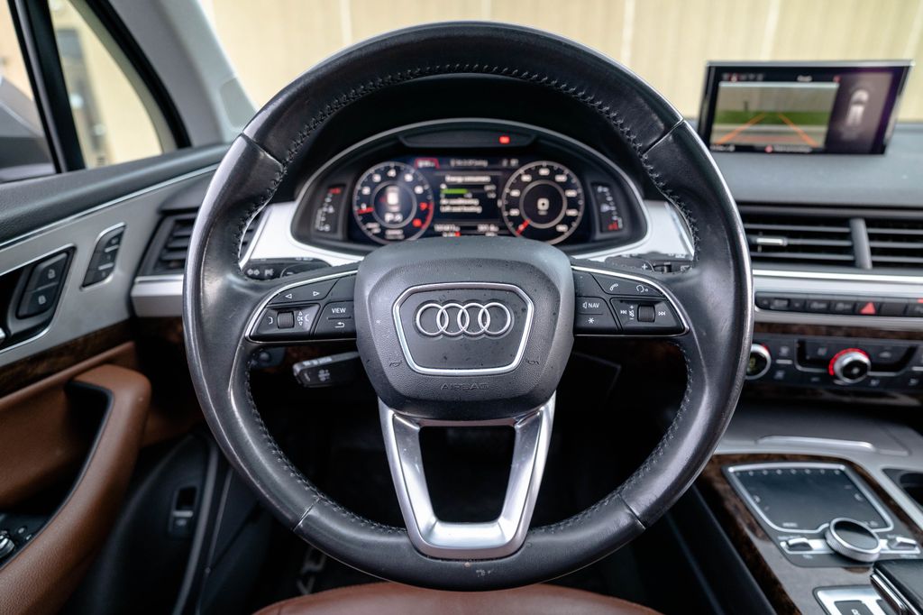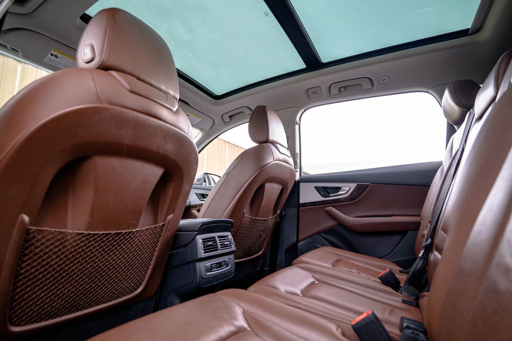 Audi MMI Navigation Plus Package (Audi Connect CARE, Audi Connect PRIME & PLUS, Audi MMI Navigation Plus w/MMI Touch, and Audi Smartphone Interface), LED Interior Lighting Package, Premium Plus Package (3D Bose Surround Sound System, Audi Side Assist w/Pre Sense Rear, Electric Tilt/Telescopic Steering Column w/Memory, and Heated Auto-Dimming Power Folding Exterior Mirrors), Vision Package (Audi Virtual Cockpit, Full LED Headlights, and Topview Camera System), 10 Speakers, 3.504 Axle Ratio, 3rd row seats: bench, 4-Wheel Disc Brakes, ABS brakes, Air Conditioning, Alloy wheels, AM/FM radio: SiriusXM, Auto-dimming Rear-View mirror, Automatic temperature control, Brake assist, Bumpers: body-color, CD player, Compass, Delay-off headlights, Driver door bin, Driver vanity mirror, Driver's Seat Mounted Armrest, Dual front impact airbags, Dual front side impact airbags, Electronic Stability Control, Exterior Parking Camera Rear, Four wheel independent suspension, Front anti-roll bar, Front Bucket Seats, Front dual zone A/C, Front fog lights, Front reading lights, Fully automatic headlights, Garage door transmitter: HomeLink, Genuine wood dashboard insert, Genuine wood door panel insert, Heated door mirrors, Heated Front Bucket Seats, Heated front seats, High intensity discharge headlights: Xenon plus, Illuminated entry, Leather Seating Surfaces, Leather Shift Knob, Leather steering wheel, Low tire pressure warning, Memory seat, Occupant sensing airbag, Outside temperature display, Overhead airbag, Panic alarm, Passenger door bin, Passenger seat mounted armrest, Passenger vanity mirror, Power door mirrors, Power driver seat, Power Liftgate, Power moonroof, Power passenger seat, Power steering, Power windows, Radio data system, Radio: MMI Radio Plus w/Audi Sound System, Rain sensing wipers, Rear air conditioning, Rear anti-roll bar, Rear fog lights, Rear reading lights, Rear seat center armrest, Rear window defroster, Rear window wiper, Remote keyless entry, Roof rack: rails only, Security system, Speed control, Speed-sensing steering, Split folding rear seat, Spoiler, Steering wheel mounted audio controls, Tachometer, Telescoping steering wheel, Tilt steering wheel, Traction control, Trip computer, Turn signal indicator mirrors, Variably intermittent wipers, and Wheels: 18" 5-Arm-Design.