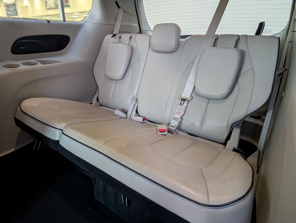 20 Speaker harman/kardon Sound Group (20 harman/kardon Speakers and 760 Watt Amplifier), Advanced Safetytec Group (360 Surround View Camera System, Adaptive Cruise Control w/Stop & Go, Advanced Brake Assist, Auto High Beam Headlamp Control, Full Speed Forward Collision Warning Plus, Lane Departure Warning Plus, Parallel & Perp Park Assist w/Stop, ParkSense Front/Rear Park Assist w/Stop, and Rain Sensitive Windshield Wipers), Quick Order Package 2EC, Uconnect Theater w/Streaming (115V Auxiliary Power Outlet, 3-Channel Video Remote Control, 3-Channel Wireless Headphones (RF), Blu-Ray/DVD Player/USB Port, High Definition Multimedia Interface, Seatback Video Screens, and Video USB Port), 3.6L V6, 17" x 7.0" Polished Aluminum Wheels, Alloy wheels, Front Fascia Air Deflectors, Heated front seats, Navigation System, Power Liftgate, Ventilated front seats, 13 Speakers, 3rd row seats: split-bench, 4-Wheel Disc Brakes, ABS brakes, Air Conditioning, AM/FM radio: SiriusXM, Apple CarPlay/Android Auto, Auto-dimming door mirrors, Auto-dimming Rear-View mirror, Automatic temperature control, Bodyside moldings, Brake assist, Bumpers: body-color, Compass, Delay-off headlights, Driver door bin, Driver vanity mirror, Driver's Seat Mounted Armrest, Dual front impact airbags, Dual front side impact airbags, Electronic Stability Control, Emergency communication system: Uconnect Access, Four wheel independent suspension, Front anti-roll bar, Front Bucket Seats, Front dual zone A/C, Front fog lights, Front reading lights, Fully automatic headlights, Garage door transmitter, Heated door mirrors, Heated steering wheel, Heavy Duty Suspension, Illuminated entry, KeySense, Knee airbag, Leather steering wheel, Low tire pressure warning, Memory seat, Occupant sensing airbag, Outside temper