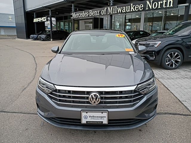 Dealer Maintained, Local Trade, Discover the perfect blend of style, efficiency, and advanced technology with this 2019 Volkswagen Jetta 1.4T SE in stunning Platinum Gray Metallic with a refined Titan Black interior, available now at Volkswagen of Milwaukee North. This sleek sedan delivers impressive fuel economy and responsive performance thanks to its turbocharged 1.4L engine, making it an ideal choice for commuting through Milwaukee or weekend road trips across Wisconsin. The SE Package adds premium features like a panoramic sunroof, heated front seats, Blind Spot Monitor, Apple CarPlay® and Android AutoTM integration, and advanced safety technology for enhanced confidence on every drive. With its bold exterior styling, spacious cabin, and renowned German engineering from Volkswagen, this 2019 Jetta 1.4T offers exceptional value and modern comfort. Visit Volkswagen of Milwaukee North today to test drive this well-equipped, fuel-efficient sedan and experience why the Jetta remains a top choice among drivers in the Milwaukee area., Titan Black w/Perforated V-Tex Leatherette Seat Trim. Odometer is 36344 miles below market average!