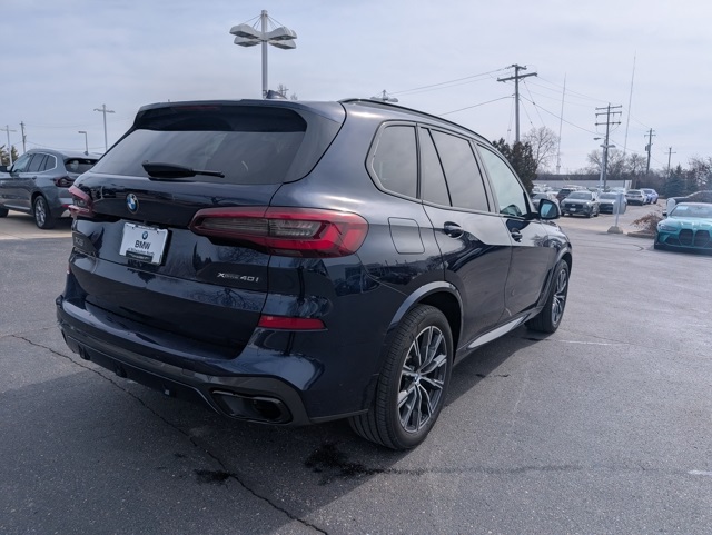 Executive Package (Active Park Distance Control, Drive Recorder, Enhanced USB & Bluetooth, Gesture Control, Head-Up Display, Heated & Cooled Cup Holders, Icon Adaptive LED Headlights w/Laserlight, Panoramic Sky Lounge LED Roof, Parking Assistant Plus, Rear Manual Side Window Shades, Rear-View Camera, Remote Engine Start, SiriusXM Satellite Radio w/1 Year All Access, Soft-Close Automatic Doors, Surround View w/3D View, WiFi Hotspot, and Wireless Charging), Luxury Seating Package (Front Massaging Seats, Front Ventilated Seats, and Multi-Contour Seats), M Sport Package (Adaptive M Suspension, Aerodynamic Kit, High-Gloss Shadowline Roof Rails, M Steering Wheel, Shadowline Exterior Trim, Vernasca Leather Upholstery, Wheels: 20" x 9" M Star-Spoke Bi-Color, and Without Lines Designation Outside), M Sport Package (337), X5 xDrive40i, 4D Sport Utility, 3.0L I6 DOHC 24V TwinPower Turbo, AWD, Tanzanite Blue II Metallic, Coffee w/Individual Extended Merino Leather Upholstery or Individual Extended Merino Leather Upholstery, 10 Speakers, 3.39 Axle Ratio, 4-Wheel Disc Brakes, 4-Zone Automatic Climate Control, ABS brakes, Acoustic Glass, Air Conditioning, Alloy wheels, AM/FM radio, AM/FM Stereo, Anthracite Alcantara Headliner, Apple CarPlay Compatibility, Auto High-b