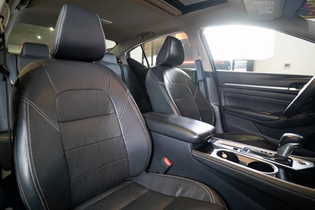 CVT with Xtronic, 19" Alloy Wheels, Blind Spot Warning, Brake assist, Heated front seats, Heated steering wheel, Power moonroof, Radio: AM/FM/HD w/Bose Premium Sound System, Rear Parking Sensors, Remote keyless entry, 4-Wheel Disc Brakes, 9 Speakers, ABS brakes, Air Conditioning, Alloy wheels, AM/FM radio: SiriusXM, Auto High-beam Headlights, Auto-dimming Rear-View mirror, Automatic temperature control, Body-Colored Splash Guards, Bumpers: body-color, Compass, Delay-off headlights, Driver door bin, Driver vanity mirror, Dual front impact airbags, Dual front side impact airbags, Electronic Stability Control, Emergency communication system: NissanConnect Services, Floor Mats/Trunk Mat/Hideaway Net, Four wheel independent suspension, Front anti-roll bar, Front Bucket Seats, Front Center Armrest, Front dual zone A/C, Front fog lights, Front reading lights, Fully automatic headlights, Garage door transmitter: HomeLink, Heated door mirrors, Heated Front Bucket Seats, Illuminated entry, Knee airbag, Leather Shift Knob, Leather-Appointed Seat Trim, Low tire pressure warning, Memory seat, Navigation System, NissanConnect featuring Apple CarPlay and Android Auto, Occupant sensing airbag, Outside temperature display, Overhead airbag, Overhead console, Panic alarm, Passenger door bin, Passenger vanity mirror, Power door mirrors, Power driver seat, Power passenger seat, Power steering, Power windows, Radio data system, Rear anti-roll bar, Rear reading lights, Re