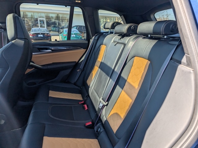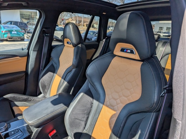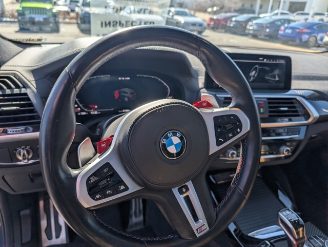 Connected Package Professional, X3 M Competition, 4D Sport Utility, 3.0L I6 Turbocharged DOHC 24V LEV3-ULEV125 473hp, 8-Speed Automatic Sport, AWD, Phytonic Blue Metallic, ABS brakes, Alloy wheels, Electronic Stability Control, Front dual zone A/C, Heated door mirrors, Heated Front Seats, Heated front seats, Illuminated entry, Low tire pressure warning, Navigation System, Power Liftgate, Power moonroof, Remote keyless entry, Traction control, 16 Speakers, 3.15 Axle Ratio, 4-Wheel Disc Brakes, Adaptive suspension, Air Conditioning, AM/FM radio: SiriusXM, Auto High-beam Headlights, Auto-dimming door mirrors, Auto-dimming Rear-View mirror, Automatic temperature control, BMW Live Cockpit Professional, Brake assist, Bumpers: body-colour, CD player, ConnectedDrive Services, Delay-off headlights, Driver door bin, Driver vanity mirror, Dual front impact airbags, Dual front side impact airbags, Electric Seats w/Driver Memory, Emergency communication system: BMW Assist Emergency Call, Exterior Parking Camera Rear, Four wheel independent suspension, Front anti-roll bar, Front Bucket Seats, Front reading lights, Fully automatic headlights, Garage door transmitter, harman/kardon® Sound System, harman/kardon® Speakers, Heads-Up Display, Heated steering wheel, Lumbar Support, M Sport Seats, Memory seat, Merino Leather/Alcantara Upholstery, Occupant sensing airbag, Outside temperature display, Overhead airbag, Panic alarm, Passenger door bin, Passenger vanity mirror, Power door mirrors, Power driver seat, Power passenger seat, Power steering, Power windows, Radio data system, Radio: AM/FM/In-Dash Single CD Player, Rain sensing wipers, Rear air conditioning, Rear an