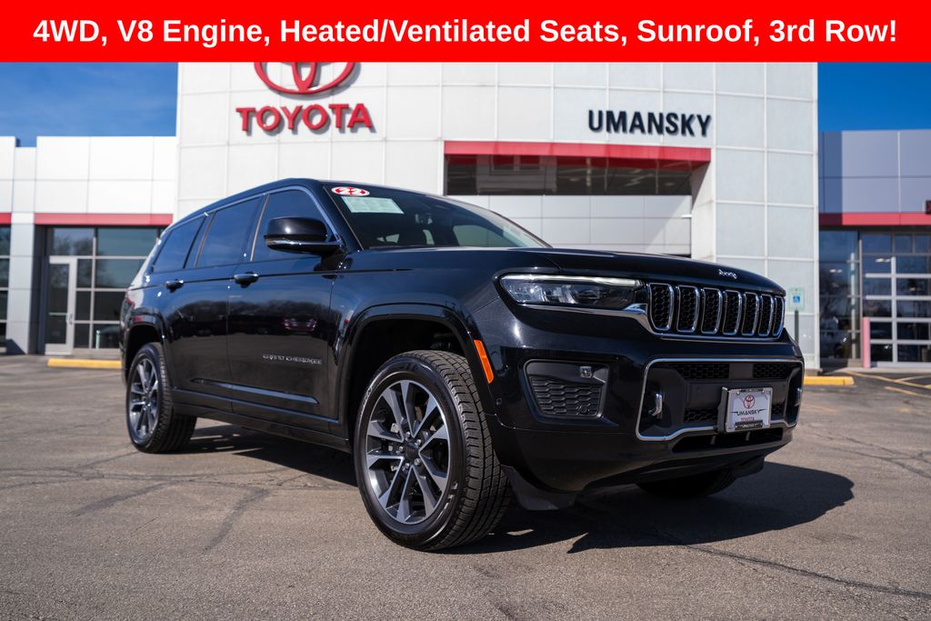 Includes 10 Year/150,000 Mile Warranty, Experience premium capability and refined luxury in this 2022 Jeep Grand Cherokee L Overland, now available at Umansky Toyota Milwaukee. Finished in a stunning Diamond Black Crystal Pearlcoat exterior and paired with a sophisticated Steel Grey/Global Black interior, this three-row SUV delivers powerful performance and upscale comfort for Milwaukee drivers. The Overland trim offers advanced 4x4 capability, premium leather seating, a large touchscreen infotainment system with smartphone integration, panoramic sunroof, and cutting-edge safety features. With spacious seating for the whole family, impressive towing capability, and bold Jeep styling, this 2022 Jeep Grand Cherokee L Overland at Umansky Toyota Milwaukee is the perfect blend of luxury, versatility, and rugged confidence., 7-Passenger Seating, 19 Speaker McIntosh Audio System, 10.1" Touchscreen Display, Apple CarPlay, Power Liftgate, 10.1" Touchscreen Display, 19 Speakers High Performance Audio, 2nd Row Manual Window Shades, 4G LTE Wi-Fi Hot Spot, 950 Watt Amplifier, Active Noise Control System, All Radio Equipped Vehicles, Alloy wheels, Apple CarPlay, ATC w/4 Zone Temp Control, Connected Travel & Traffic Services, Connectivity - US/Canada, Disassociated Touchscreen Display, Driver Power Seat Back Massage, For Details, Visit DriveUconnect.com, For More Info, Call 800-643-2112, Front Passenger Power Seat Back Massage, Global Telematics Box Module (TBM), Google Android Auto, GPS Antenna Input, GPS Navigation, HD Radio, Integrated Center Stack Radio, Integrated Voice Command w/Bluetooth, Luxury Tech Group IV, Nappa Leather Seats, Nappa Leather Seats (TL), Navigation System, Passenger Seat Memory, Power Adjust 12-Way Driver Seat, Power Adjust 12-Way Front Passenger Seat, Power Liftgate, Power moonroof, Quick Order Package 25N, Radio: Uconnect 5 Nav w/10.1" Display, Rearview Autodim Digital Display Mirror, Reclining 3rd row seat, SiriusXM Radio Service, SiriusXM Satellite Radio, SiriusXM w/360L, USB Host Flip, Wheels: 20" x 8.5" Machined Face Aluminum, Wireless Charging Pad.