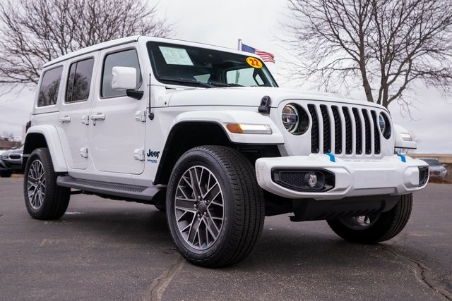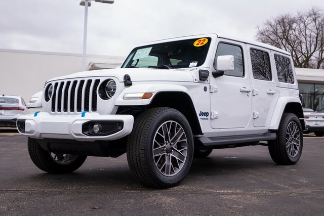 Includes 10 Year/150,000 Mile Warranty, Discover adventure-ready efficiency with this 2022 Jeep Wrangler Sahara High Altitude 4xe in Bright White with a Black interior, now available at BMW of Milwaukee North in Milwaukee, Wisconsin. This plug-in hybrid Wrangler blends legendary Jeep off-road capability with modern electrified performance, featuring the refined High Altitude trim, premium materials, advanced technology, and the versatility of 4xe hybrid power for impressive efficiency and torque. The iconic Wrangler design pairs perfectly with upscale comfort, removable roof and doors, and confident 4x4 capability—making it ideal for Wisconsin roads, city driving, and weekend getaways alike. If you’re searching for a luxury SUV with rugged capability, hybrid efficiency, and unmistakable Jeep style, this 2022 Jeep Wrangler Sahara High Altitude 4xe in Milwaukee is a standout choice., Wrangler Unlimited Sahara High Altitude 4xe, 4D Sport Utility, 2.0L I4 DOHC, 4WD, Bright White Clearcoat, Black Leather, Adaptive Cruise Control w/Stop, Advanced Brake Assist, Advanced Safety Group, Auto High Beam Headlamp Control, Body Color 3-Piece Hard Top, Body Color Door Handles, Body Color Front Bumper, Body Color Grille w/Gloss Black Rings, Body Color Power Locking Fuel Filler Door, Body Color Rear Bumper w/Step Pads, Cold Weather Group, Exterior Mirrors w/Supplemental Signals, Full Speed Forward Collision Warning Plus, Heated Front Seats, Heated Steering Wheel, High Altitude Package, Leather Trimmed Bucket Seats, Premium Dark Exterior Accents, Quick Order Package 29N High Altitude, Remote Start System, Safety Group, Summit Badging, Wheels: 20" x 8.0" Fully Painted Aluminum, Wrapped I/P Bezel w/Caramel Stitch. Odometer is 20532 miles below market average!