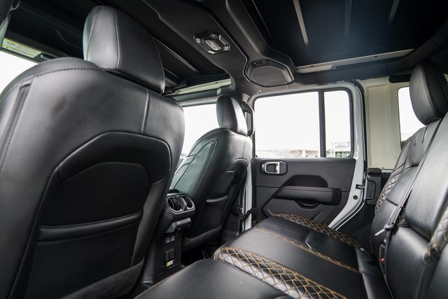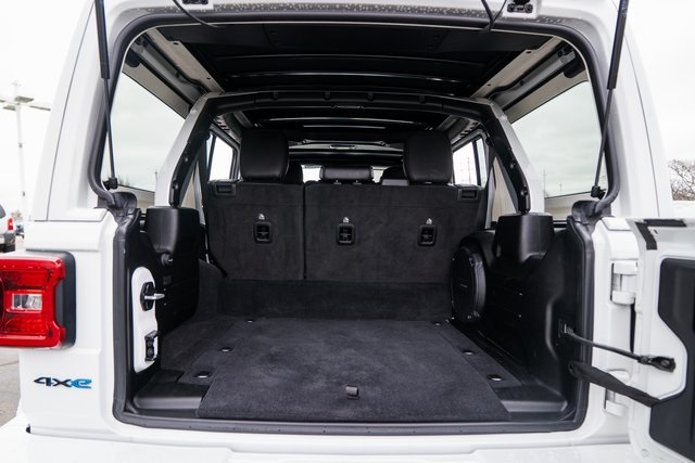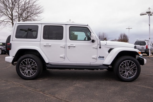 Advanced Safety Group (Adaptive Cruise Control w/Stop, Advanced Brake Assist, Auto High Beam Headlamp Control, and Full Speed Forward Collision Warning Plus), Cold Weather Group (Heated Front Seats, Heated Steering Wheel, and Remote Start System), High Altitude Package, Quick Order Package 29N High Altitude (Body Color 3-Piece Hard Top, Body Color Door Handles, Body Color Front Bumper, Body Color Grille w/Gloss Black Rings, Body Color Power Locking Fuel Filler Door, Body Color Rear Bumper w/Step Pads, Exterior Mirrors w/Supplemental Signals, Leather Trimmed Bucket Seats, Premium Dark Exterior Accents, Summit Badging, Wheels: 20" x 8.0" Fully Painted Aluminum, Wrapped I/P Bezel w/Caramel Stitch, Freedom Panel Storage Bag, Rear Window Defroster, and Rear Window Wiper/Washer), Safety Group (Blind Spot & Cross Path Detection and ParkSense Rear Park Assist System), Wrangler Unlimited Sahara High Altitude 4xe, 4D Sport Utility, 2.0L I4 DOHC, 4WD, Bright White Clearcoat, Black Leather, 3.73 Rear Axle Ratio, 4-Wheel Disc Brakes, 9 Speakers, ABS brakes, Air Conditioning, Alloy wheels, AM/FM radio, Anti-Spin Differential Rear Axle, Apple CarPlay/Android Auto, Auto-dimming Rear-View mirror, Automatic temperature control, Brake assist, Compass, Corning Gorilla Glass, Delay-off headlights, Driver door bin, Driver vanity mirror, Dual front impact airbags, Dual front side impact airbags, Electronic Stability Control, Emergency communication system: SiriusXM Guardian, Front anti-roll bar, Front Bucket Seats, Front Center Armrest w/Storage, Front dual zone A/C, Front fog lights, Front Licens