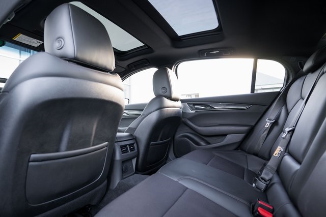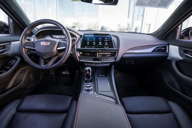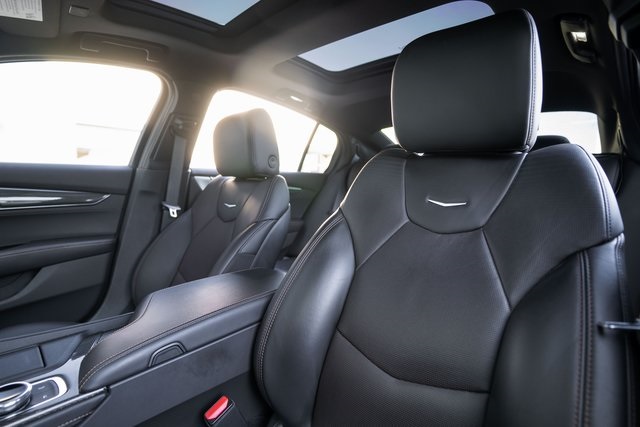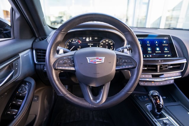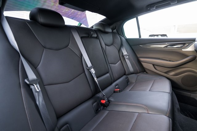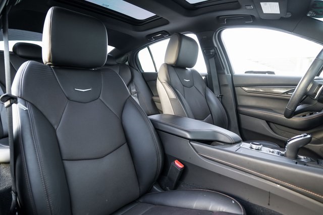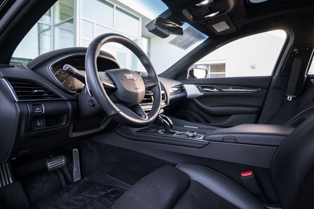 Climate Package (Driver Power Lumbar Massage Seat, Front Passenger Power Lumbar Massage Seat, Heated Driver & Front Passenger Seats, Heated Steering Wheel, and Ventilated Driver & Front Passenger Seats), Navigation & Bose Premium Audio Package, Radio: Cadillac User Experience w/Embedded Nav (Bose Performance Series Premium 15-Speaker System and SiriusXM w/360L), Preferred Equipment Group 1SE (4-Wheel Antilock 4-Wheel Disc Brakes, Body-Color Heated Pwr-Adjustable Outside Mirrors, Dual Diagonal Color Driver Information Center, Front & Rear Park Assist, HD Rear Vision Camera, Inside Rear-View Auto-Dimming Mirror, Lane Keep Assist w/Lane Departure Warning, LED Reflective Windshield Alert, and Ride & Handling Suspension), CT5 Sport, 4D Sedan, AWD, Black Raven, Jet Black With Jet Black Accents Leather, 3 USB Ports, 4-Wheel Disc Brakes, 9 Speakers, ABS brakes, Air Conditioning, Alloy wheels, AM/FM radio: SiriusXM with 360L, Apple CarPlay/Android Auto, Auto High-beam Headlights, Auto-dimming door mirrors, Auto-dimming Rear-View mirror, Automatic Stop/Start w/Disable, Automatic temperature control, Blue Brembo Calipers, Brake assist, Brembo V Performance Front Brakes (Blue), Brembo V Performance Front Brakes (Red), Bumpers: body-color, Compass, Delay-off headlights, Driver 4-Way Power Lumbar Seat Adjuster, Driver door bin, Driver vanity mirror, Dual front impact airbags, Dual front side impact airbags, Electronic Stability Control, Emergency communication system: OnStar and Cadillac connected services capable, Exterior Parking Camera Rear, Four wheel independent suspension, Front anti-roll bar, Front Bucket Seats, Front Center Armrest, Front dual zone A/C, Front License Plate Bracket, Front Passenger 4-Way Power Lumbar Seat Adjuster, Front Passenger 8-Way Power Seat Adjuster, Front reading lights, Fully automatic headlights, Garage door transmitter, HD Radio, Heated d