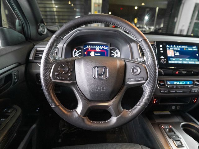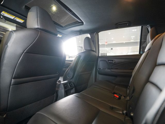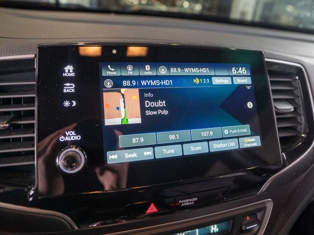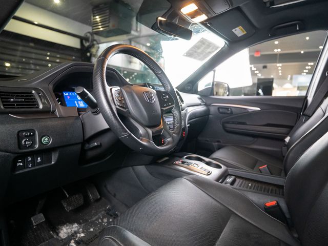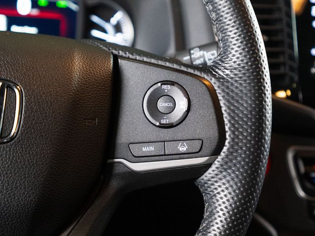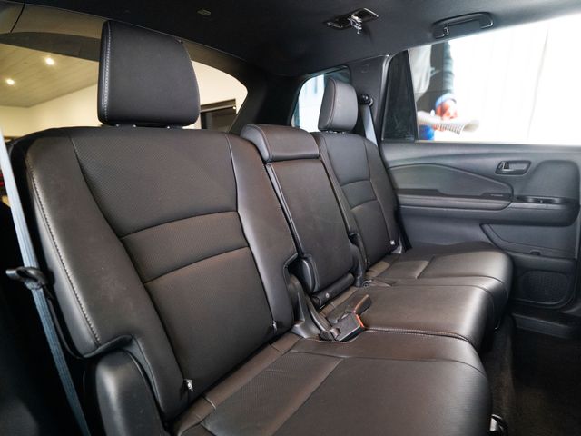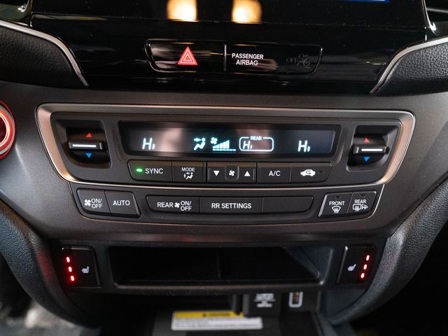 4-Wheel Disc Brakes, 4.334 Axle Ratio, 7 Speakers, A/V remote: CabinControl, ABS brakes, Air Conditioning, Alloy wheels, AM/FM radio: SiriusXM, Apple CarPlay/Android Auto, Auto High-beam Headlights, Auto-dimming Rear-View mirror, Automatic temperature control, Blind Spot Information (BSI) System warning, Brake assist, Bumpers: body-color, Delay-off headlights, Driver door bin, Driver vanity mirror, Driver's Seat Mounted Armrest, Dual front impact airbags, Dual front side impact airbags, Electronic Stability Control, Emergency communication system: HondaLink Assist, Exterior Parking Camera Rear, Four wheel independent suspension, Front anti-roll bar, Front Bucket Seats, Front Center Armrest, Front dual zone A/C, Front reading lights, Fully automatic headlights, Garage door transmitter: HomeLink, Heated door mirrors, Heated Front Bucket Seats, Heated Front Seats, Illuminated entry, Lane departure: Lane Keeping Assist System (LKAS) active, Leather-Trimmed Seats, Low tire pressure warning, Occupant sensing airbag, Outside temperature display, Overhead airbag, Overhead console, Panic alarm, Passenger door bin, Passenger seat mounted armrest, Passenger vanity mirror, Power door mirrors, Power driver seat, Power Liftgate, Power moonroof, Power passenger seat, Power steering, Power windows, Radio data system, Radio: 215-Watt Audio System w/7 Speakers, Rear air conditioning, Rear anti-roll bar, Rear reading lights, Rear seat center armrest, Rear window defroster, Rear window wiper, Remote Keyless Entry, Security system, Speed control, Speed-sensing steering, Split folding rear seat, Spoiler, Steering wheel mounted audio controls, Tachometer, Telescoping steering wheel, Tilt steering wheel, Traction control, Trip computer, Turn signal indicator mirrors, Variably intermittent wipers, and Wheels: 20" Pewter Gray Alloy.