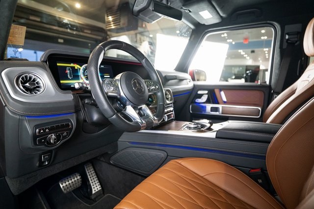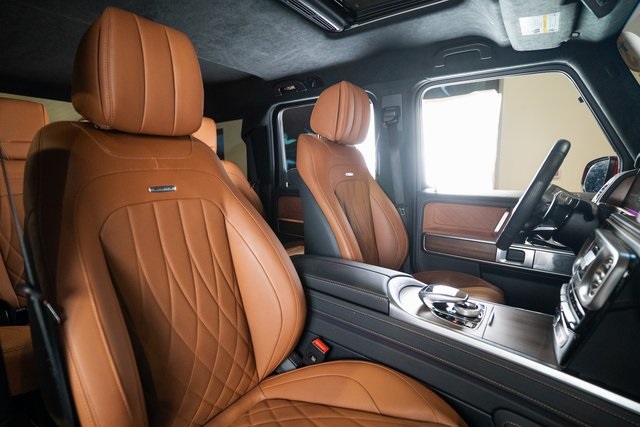 G manufaktur Interior Package Plus (Armrests in Exclusive Nappa Leather, G manufaktur Front Passenger Grab Handle Badge, and Upper & Lower Dashboard in Nappa Leather), Mercedes-Benz Certified Pre-Owned Certified, Apple CarPlay®/Android Auto®, Auto High-beam Headlights, Brake assist, Burmester® Surround Sound System, Exterior Parking Camera Rear, Heated Front Seats, Heated rear seats, Power moonroof, Wheels: 22" AMG® Cross-Spoke Forged, 15 Speakers, 4-Wheel Disc Brakes, ABS brakes, Adaptive suspension, Air Conditioning, Alloy wheels, AM/FM radio: SiriusXM, Android Auto®, Apple CarPlay®, Auto tilt-away steering wheel, Auto-dimming door mirrors, Auto-dimming Rear-View mirror, Automatic temperature control, Axle Ratio: TBD, Bodyside moldings, Bumpers: body-color, Child-Seat-Sensing Airbag, Compas