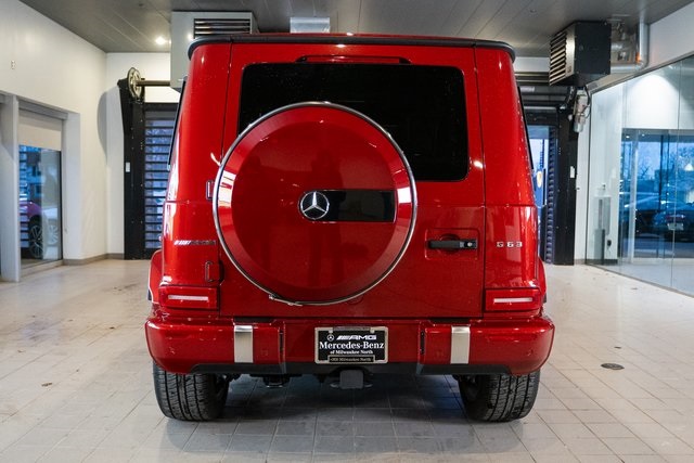 -Certified Pre-Owned - Unlimited Mileage Warranty, -Dealer Maintained, -Well Maintained, Command attention in every season with this **2024 Certified Pre-Owned Mercedes-Benz G 63 AMG®** at Mercedes-Benz of Milwaukee North in Milwaukee, WI. Finished in striking **Cardinal Red Metallic** over an opulent **Saddle Brown leather interior**, this iconic luxury SUV blends unmistakable design with handcrafted AMG® performance. Powered by a handcrafted 4.0L V8 biturbo engine, the G 63 AMG® delivers exhilarating horsepower, rapid acceleration, and legendary off-road capability with advanced 4MATIC® all-wheel drive. Equipped with the exclusive **MANUFAKTUR Interior Package Plus**, the cabin showcases premium materials, diamond-stitched leather, and bespoke detailing that elevate comfort and craftsmanship to extraordinary levels. As a Mercedes-Benz Certified Pre-Owned vehicle, this G 63 AMG® has passed a rigorous multi-point inspection and includes warranty-backed peace of mind. If you’re searching for a high-performance luxury SUV in Milwaukee that combines bold styling, elite capability, and ultimate prestige, this 2024 Mercedes-Benz G 63 AMG® is an exceptional opportunity., Apple CarPlay®/Android Auto®, Armrests in Exclusive Nappa Leather, Auto High-beam Headlights, Brake assist, Burmester® Surround Sound System, Exterior Parking Camera Rear, G manufaktur Front Passenger Grab Handle Badge, G manufaktur Interior Package Plus, Heated Front Seats, Heated rear seats, Power moonroof, Upper & Lower Dashboard in Nappa Leather, Wheels: 22" AMG® Cross-Spoke Forged. Odometer is 10927 miles below market average!