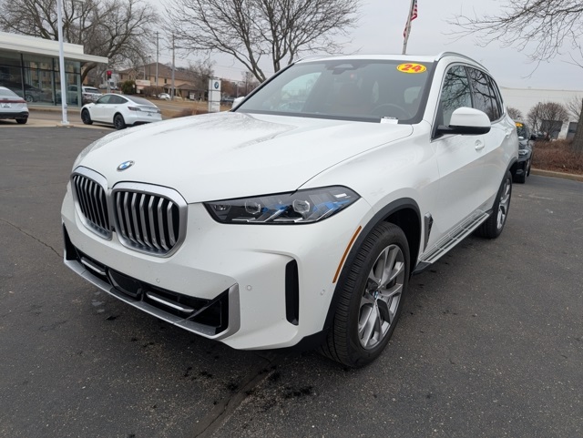 BMW Certified w/Unlimited Mile Warranty, Brand New Tires, Discover the ultimate blend of luxury, performance, and innovation with the 2024 BMW X5 in Alpine White with Cognac interior at BMW of Milwaukee North in Milwaukee. This stunning BMW SUV commands attention with its crisp Alpine White exterior, bold kidney grille, and athletic stance, while the rich Cognac Vernasca leather interior delivers premium comfort and sophisticated style. Powered by a responsive BMW TwinPower Turbo engine and equipped with xDrive intelligent all-wheel drive, the 2024 X5 offers exceptional performance and confident handling in all Wisconsin seasons. Inside, enjoy advanced technology including the BMW Curved Display with iDrive 8, Apple CarPlay®, Android AutoTM, premium driver-assistance features, and spacious seating for five with generous cargo capacity. If you’re searching for a luxury SUV for sale in Milwaukee, the 2024 BMW X5 at BMW of Milwaukee North delivers refined craftsmanship, cutting-edge safety, and dynamic driving performance tailored for Wisconsin roads., X5 xDrive40i, 4D Sport Utility, 3.0L I6 DOHC 24V, AWD, Alpine White, Cognac Cognac Sensafin, Active Park Distance Control, Adaptive Full LED Lights w/Cornering Lights, Connected Package Pro, Gesture Control, harman/kardon Surround Sound System, Live Cockpit Pro, Parking Assistance Package, Parking Assistant Professional, Premium Package, Remote Engine Start, Surround View w/3D View.