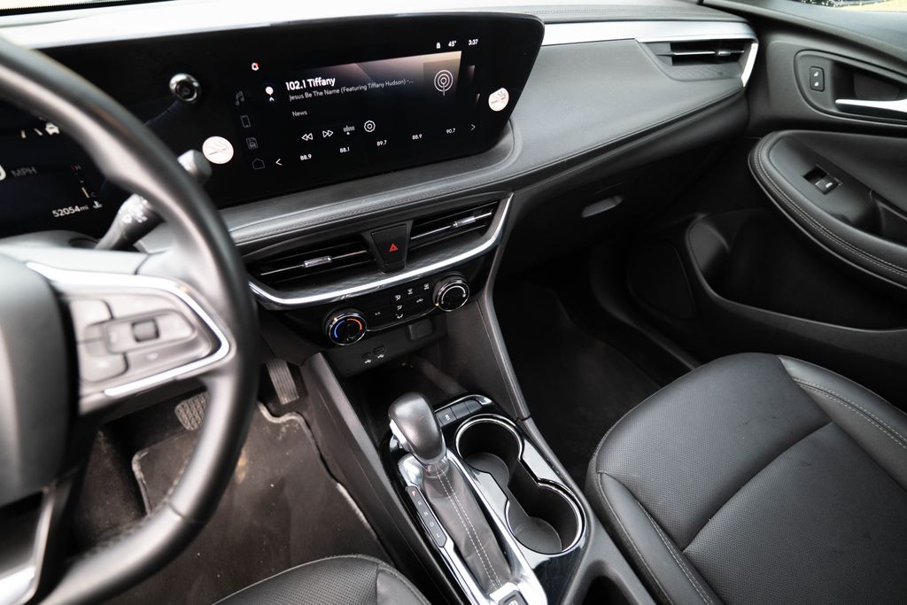 Preferred Equipment Group 1SD, Encore GX Sport Touring, CarBravo Certified Tier Certified, 2 USB Ports (1 Type-A, 1 Type-C), 4-Way Manual Passenger Seat Adjuster, 4-Wheel Disc Brakes, 5.45 Final Drive Axle Ratio, 6 Speakers, 6-Way Manual Driver Seat Adjuster, ABS brakes, Air Conditioning, Alloy wheels, AM/FM radio: SiriusXM, Auto High-beam Headlights, Automatic temperature control, Brake assist, Bumpers: body-color, Compass, Delay-off headlights, Deleted 3 Years of OnStar Remote Access, Driver door bin, Driver vanity mirror, Dual front impact airbags, Dual front side impact airbags, Electronic Stability Control, Emergency communication system: OnStar and Buick connected services capable, Enhanced Performance 6-Speaker System, Front anti-roll bar, Front Bucket Seats, Front Center Armrest, Front License Plate Bracket, Front reading lights, Front wheel independent suspension, Fully automatic headlights, Heated door mirrors, Illuminated entry, Knee airbag, Leatherette Seat Trim, Low tire pressure warning, Occupant sensing airbag, Outside temperature display, Overhead airbag, Overhead console, Panic alarm, Passenger door bin, Passenger vanity mirror, Power door mirrors, Power steering, Power windows, Radio data system, Radio: Audio System w/AM/FM, Rear reading lights, Rear side impact airbag, Rear window defroster, Rear window wiper, Remote keyless entry, Ride & Handling Suspension, Security system, SiriusXM, Speed control, Speed-sensing steering, Split folding rear seat, Spoiler, Sport steering wheel, Steering wheel mounted audio controls, Tachometer, Telescoping steering wheel, Tilt steering wheel, Traction control, Trip computer, Variably intermittent wipers, Wheels: 18" Gloss