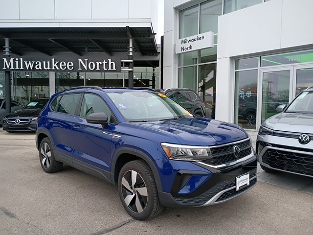 Volkswagen Certified with at least 2 years or 24,000 miles (whichever comes first) of warranty!, Discover the exceptional value and confidence of a Volkswagen Certified 2024 Volkswagen Taos 1.5T S in stunning Dusk Blue Metallic with a refined Gray/Black interior, available now at Volkswagen of Milwaukee North in Milwaukee, Wisconsin. This fuel-efficient compact SUV is powered by a responsive 1.5L turbocharged engine, delivering an ideal balance of performance and MPG for commuting in Milwaukee and weekend adventures across Wisconsin. The Taos S Package offers modern essentials including Volkswagen Digital Cockpit, advanced driver-assistance features, Apple CarPlay® and Android AutoTM, a spacious cargo area, and comfortable seating for five. As a Volkswagen Certified Pre-Owned Taos, it includes a comprehensive inspection, limited warranty coverage, and roadside assistance for added peace of mind. If you're searching for a 2024 VW Taos for sale in Milwaukee, this stylish and reliable SUV combines bold design, innovative technology, and German-engineered quality—ready for your next drive at Volkswagen of Milwaukee North.. Odometer is 9810 miles below market average! Priced below KBB Fair Purchase Price!