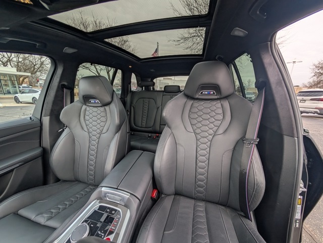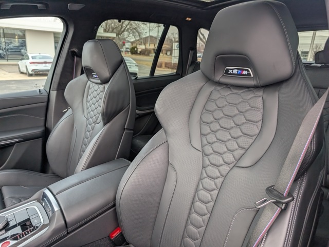 Connected Package Pro, Driving Assistance Professional Package (Active Cruise Control w/Stop & Go, Active Driving Assistant Pro, Active Lane Keeping Assistant, and Traffic Jam Assistant), Executive Package (Front & Rear Heated Seats, Front Massaging Seats, Front Ventilated Seats, Heated & Cooled Cupholders, Panoramic Sky Lounge LED Roof, Rear Manual Side Window Shades, and Soft-Close Automatic Doors), X5 M Competition, AWD, 16 Speakers, 4-Wheel Disc Brakes, ABS brakes, Adaptive suspension, Air Conditioning, Alloy wheels, AM/FM radio: SiriusXM with 360L, AM/FM Stereo, Apple CarPlay & Android Auto Compatibility, Apple CarPlay Compatibility, Auto High-beam Headlights, Auto tilt-away steering wheel, Auto-dimming door mirrors, Auto-dimming Rear-View mirror, Auto-leveling suspension, Automatic temperature control, BMW Assist eCall, BMW TeleServices, Bowers & Wilkins Diamond Surround Sound System, Brake assist, Bumpers: body-color, Compass, ConnectedDrive Services, Delay-off headlights, Driver door bin, Driver vanity mirror, Dual front impact airbags, Dual front side impact airbags, Electronic Stability Control, Emergency communication system: BMW Assist eCall, Extended Merino Leather Seat Upholstery, Exterior Parking Camera Rear, Four wheel independent suspension, Front anti-roll bar, Front Bucket Seats, Front Center Armrest, Front dual zone A/C, Front reading lights, Fully automatic headlights, Garage door transmitter, Gesture Control, harman/kardon Surround Sound System, harman/kardon® Speakers, Heads-Up Display, Heated door mirrors, Heated Front Seats, Heated front seats, Heated steering wheel, Illuminated entry, Knee airbag, Leather steering wheel, Live Cockpit Pro, Low tire pressure warning, Lumbar Support, M Compound Brakes w/Red Calipers, Memory seat, Multi-Function Seats w/Lumbar Support, Navigation System, Occupan