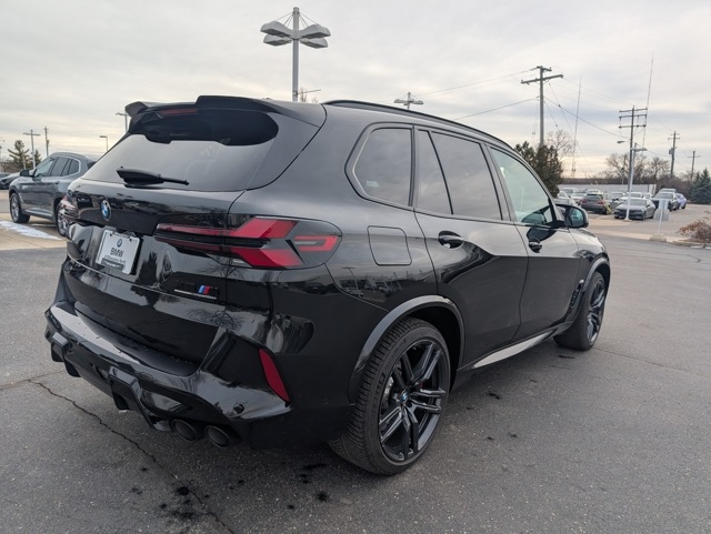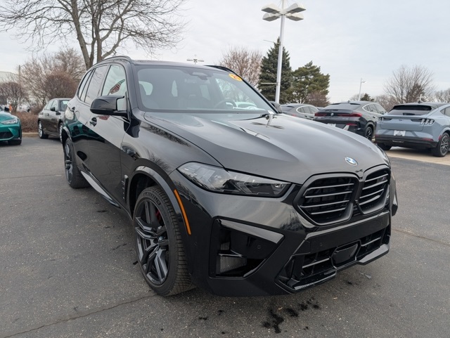 Brand New Tires, Experience the thrill of the 2025 BMW X5 M Competition at BMW of Milwaukee North in Milwaukee, where luxury meets track-inspired performance in this stunning Black Sapphire Metallic 2025 BMW X5 M Competition with a sleek Black interior. Powered by a handcrafted 4.4-liter BMW M TwinPower Turbo V8 delivering exhilarating horsepower and precision-tuned M xDrive all-wheel drive, the BMW X5 M Competition SUV offers lightning-fast acceleration, adaptive M suspension, and aggressive M styling that commands attention on Wisconsin roads. Inside, the refined Black Merino leather interior surrounds you with cutting-edge technology including BMW Curved Display with iDrive 8.5, premium Harman Kardon surround sound, advanced driver assistance features, and customizable M settings for a truly personalized driving experience. If you’re searching for a high-performance luxury SUV in Milwaukee, the 2025 BMW X5 M Competition in Black Sapphire Metallic delivers unmatched power, comfort, and sophistication—available now at BMW of Milwaukee North., X5 M Competition, AWD, Active Cruise Control w/Stop & Go, Active Driving Assistant Pro, Active Lane Keeping Assistant, Connected Package Pro, Driving Assistance Professional Package, Executive Package, Front & Rear Heated Seats, Front Massaging Seats, Front Ventilated Seats, Heated & Cooled Cupholders, Panoramic Sky Lounge LED Roof, Rear Manual Side Window Shades, Soft-Close Automatic Doors, Traffic Jam Assistant. Odometer is 2268 miles below market average!