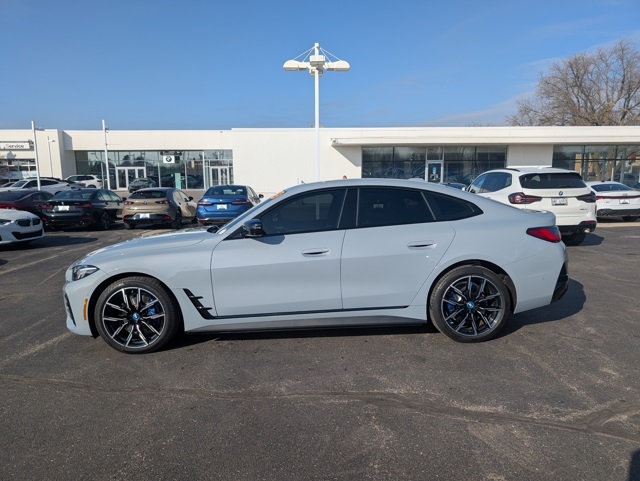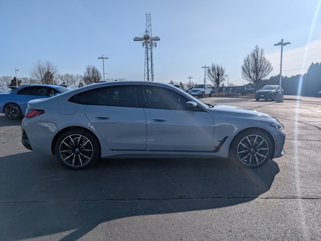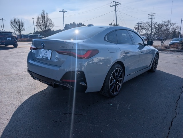 Connected Package Pro, Driving Assistance Package, M Sport Package (Aerodynamic Kit, Black Mirror Caps, M Sport Brakes w/Blue Calipers, M Steering Wheel, Shadowline Exterior Trim, Wheels: 19" x 8.5" Fr & 19" x 9.0" Rr M Aero, and Without Lines Designation Outside), M Sport Package (337), Parking Assistance Package (Active Park Distance Control, Parking Assistant Plus, Parking View w/3D View (Surround View), and Rear-View Camera), Premium Package (BMW Curved Display w/HUD, harman/kardon Surround Sound System, Heated Steering Wheel, and Iconic Sounds Electric), i4 xDrive40, BMW Certified Pre-Owned Certified, 4D Hatchback, Electric Motor, AWD, Brooklyn Grey Metallic, Black Premium Synthetic, 10 Speakers, 4-Wheel Disc Brakes, ABS brakes, Active Cruise Control, Adaptive suspension, Air Conditioning, Alloy wheels, Apple CarPlay & Android Auto Compatibility, Audio memory, Auto High-beam Headlights, Auto-dimming door mirrors, Auto-dimming Rear-View mirror, Automatic temperature control, BMW Assist eCall, BMW TeleServices, Brake assist, Brake Calipers, Bumpers: body-color, Compass, ConnectedDrive Services, Delay-off headlights, Driver door bin, Driver vanity mirror, Dual front impact airbags, Dual front side impact airbags, Electronic St