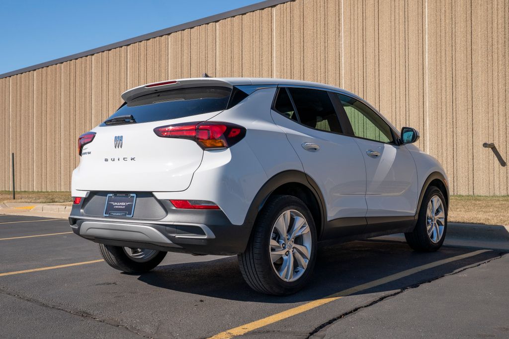 Preferred Equipment Group 1SB, Encore GX Preferred, Summit White, 2 USB Ports (1 Type-A, 1 Type-C), 4-Way Manual Passenger Seat Adjuster, 4-Wheel Disc Brakes, 5.45 Final Drive Axle Ratio, 6 Speakers, 6-Way Manual Driver Seat Adjuster, ABS brakes, Air Conditioning, Alloy wheels, AM/FM radio: SiriusXM, Auto High-beam Headlights, Automatic temperature control, Brake assist, Bumpers: body-color, Cloth w/Leatherette Seat Trim, Compass, Delay-off headlights, Driver door bin, Driver vanity mirror, Dual front impact airbags, Dual front side impact airbags, Electric Auxiliary Heating/Defroster, Electronic Stability Control, Emergency communication system: OnStar and Buick connected services capable, Enhanced Performance 6-Speaker System, Front anti-roll bar, Front Bucket Seats, Front Center Armrest, Front License Plate Bracket, Front reading lights, Front wheel independent suspension, Fully automatic headlights, Heated door mirrors, Illuminated entry, Knee airbag, Low tire pressure warning, Occupant sensing airbag, Outside temperature display, Overhead airbag, Overhead console, Panic alarm, Passenger door bin, Passenger vanity mirror, Power door mirrors, Power steering, Power windows, Radio data system, Radio: Audio System w/AM/FM, Rear reading lights, Rear side impact airbag, Rear window defroster, Rear window wiper, Remote keyless entry, Ride & Handling Suspension, Security system, SiriusXM Trial Subscription, Speed control, Speed-sensing steering, Split folding rear seat, Spoiler, Steering wheel mounted audio controls, Tachometer, Telescoping steering wheel, Tilt steering wheel, Traction control, Trip computer, Variably intermittent wipers, Wheels: 18" Bright Silver Painted Aluminum, and Wireless Apple CarPlay/Wireless Android Auto.