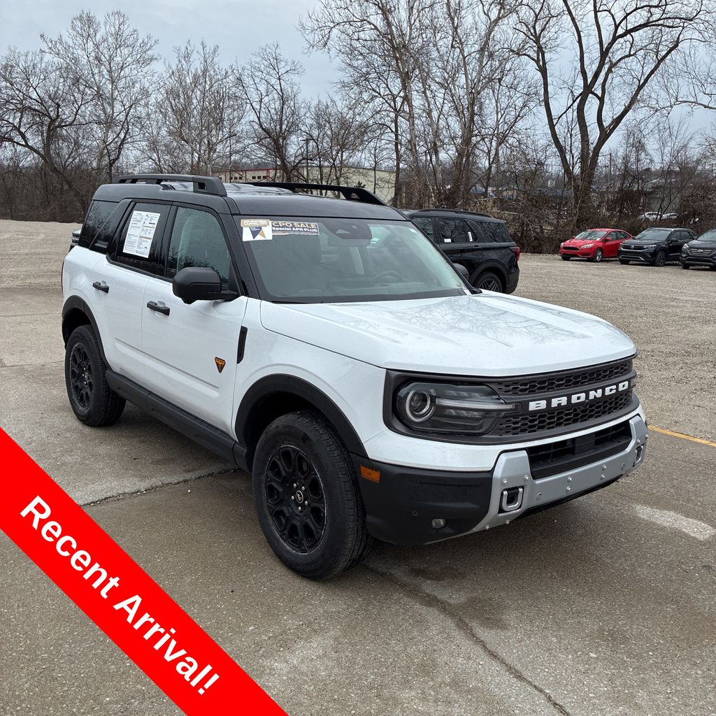Includes 10 Year/150,000 Mile Warranty, Carfax One Owner, The 2025 Ford Bronco Sport Badlands in Oxford White with a Dark Space Gray interior is a rugged and adventure-ready compact SUV available now at Umansky Toyota in Milwaukee, Wisconsin, designed for drivers who want serious capability in a daily-friendly package. Its crisp white exterior pairs cleanly with the dark space gray interior, creating a bold and purposeful look both on city streets and off-road trails. The Badlands trim enhances off-road performance with advanced 4×4 systems, tougher suspension tuning, and protective underbody features — ideal for exploring Wisconsin’s backroads and outdoor terrain throughout the seasons. With versatile cargo space, intuitive technology, and confident handling, this 2025 Ford Bronco Sport Badlands at Umansky Toyota is an excellent choice for anyone near Milwaukee, WI seeking a dependable and capable SUV that’s ready for both everyday tasks and weekend adventures!, Heated Steering Wheel, Ford Co-Pilot360 - Reverse Camera Back-Up Camera, Heated Front Seats, Wireless Apple CarPlay/Android Auto, Equipment Group 400A.