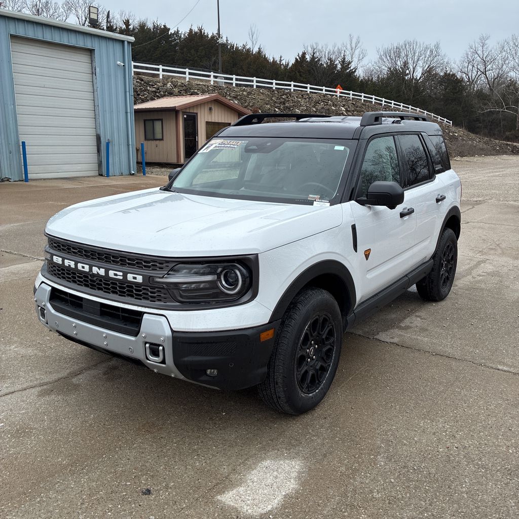Oxford White 2025 Ford Bronco Sport Badlands 4D Sport Utility 4WD 8-Speed Automatic EcoBoost 2.0L I4 GTDi DOHC Turbocharged VCT 21/27 City/Highway MPG