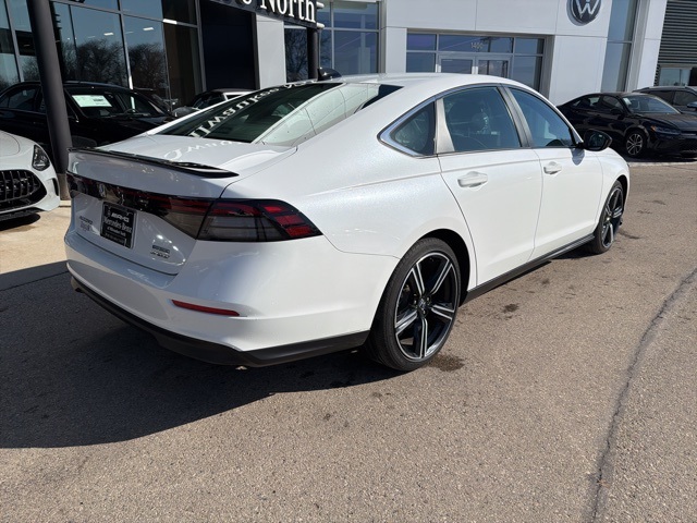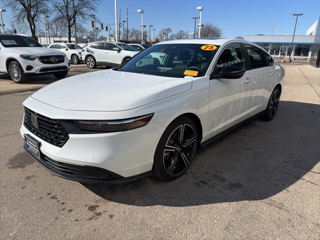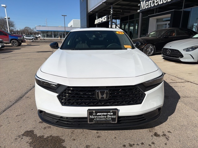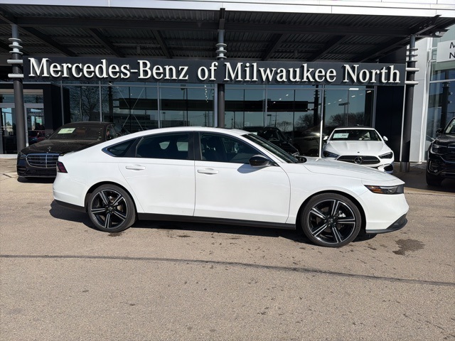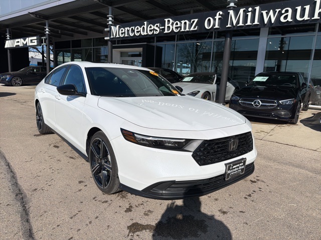-120 Month or 150,000 Mile Limited Warranty, -Clean Carfax - One Owner, -Dealer Maintained, -Well Maintained, Discover impressive efficiency and modern sophistication with this **2025 Honda Accord Hybrid Sport** available at Mercedes-Benz of Milwaukee North in Milwaukee, WI. Finished in elegant **Platinum White Pearl** over a sleek **Black interior**, this stylish midsize sedan delivers a perfect balance of performance, comfort, and fuel-saving hybrid technology. Powered by Honda’s advanced two-motor hybrid system, the Accord Hybrid Sport provides responsive acceleration and outstanding MPG, making it ideal for commuting through Milwaukee or longer Wisconsin road trips. Its bold Sport styling cues, alloy wheels, and contemporary design give it a confident road presence, while the spacious cabin offers advanced connectivity, intuitive infotainment, and premium comfort features. If you’re searching for a fuel-efficient sedan in Milwaukee that combines reliability, innovative hybrid performance, and modern style, this 2025 Honda Accord Hybrid Sport is an exceptional choice at Mercedes-Benz of Milwaukee North., 2.0L I4 DOHC 16V, Adaptive Cruise Control: Adaptive Cruise Control (ACC) with Low-Speed Follow, Apple CarPlay/Android Auto, Blind Spot Information (BSI) System warning, Brake assist, Exterior Parking Camera Rear, Fully automatic headlights, Heated front seats, Lane departure: Lane Keeping Assist System (LKAS) active, Power moonroof, Radio: 180-Watt Audio System, Remote keyless entry, Wheels: 19" x 8.5J Berlina Black. Priced below KBB Fair Purchase Price!