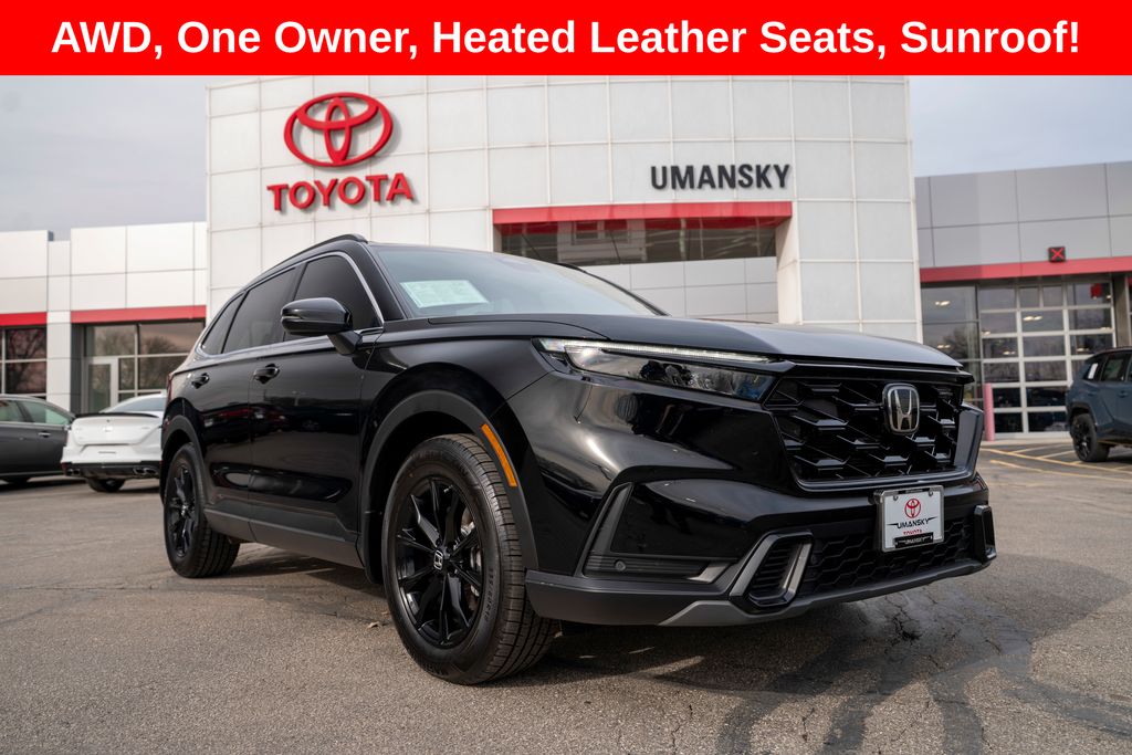 Includes 10 Year/150,000 Mile Warranty, Carfax One Owner, The 2025 Honda CR‐V Hybrid Sport‐L in Crystal Black Pearl with a Black interior is a sleek and efficient hybrid SUV available now at Umansky Toyota in Milwaukee, Wisconsin, blending bold style with modern technology and everyday versatility. Its striking black exterior pairs with a refined all‐black interior that offers a comfortable, tech‐rich cabin designed for driver convenience and passenger comfort. With Honda’s advanced hybrid powertrain, this CR‐V delivers impressive fuel efficiency and confident performance — perfect for navigating Milwaukee streets or taking longer drives throughout Wisconsin. Featuring a sporty trim level with premium amenities and intuitive features, this 2025 Honda CR‐V Hybrid Sport‐L at Umansky Toyota is an excellent choice for drivers near Milwaukee, WI who want a dependable, well‐equipped hybrid SUV!, Heated Front Bucket Seats, Wireless Apple CarPlay and Android Auto, Front And Rear Parking Sensors, Sunroof, 2.0L I4 DOHC 16V, Adaptive Cruise Control: Adaptive Cruise Control (ACC) with Low-Speed Follow, Power Liftgate, Power moonroof, Wheels: 18" Berlina Black Alloy.