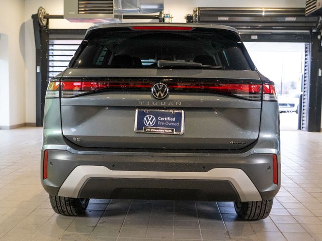 Volkswagen Certified with at least 2 years or 24,000 miles (whichever comes first) of warranty!, Clean Carfax, Dealer Maintained, Experience refined design, advanced technology, and confident performance with this Volkswagen Certified 2025 Volkswagen Tiguan 2.0T SE at Volkswagen of Milwaukee North in Milwaukee, Wisconsin. Showcasing a sleek Platinum Gray Metallic exterior complemented by a sophisticated Grigio & Black interior, this certified Tiguan delivers a premium look with everyday practicality. The popular SE Package adds enhanced comfort, intuitive infotainment, and advanced safety features, while the responsive 2.0L turbocharged engine ensures a smooth and efficient drive for commuting or weekend adventures. Backed by the assurance of Volkswagen Certified Pre-Owned coverage and a comprehensive inspection, this 2025 Volkswagen Tiguan SE offers exceptional value and peace of mind. Visit Volkswagen of Milwaukee North today to test drive this stylish and capable SUV, perfectly suited for life in the Milwaukee area., AWD. Odometer is 1752 miles below market average! Priced below KBB Fair Purchase Price!