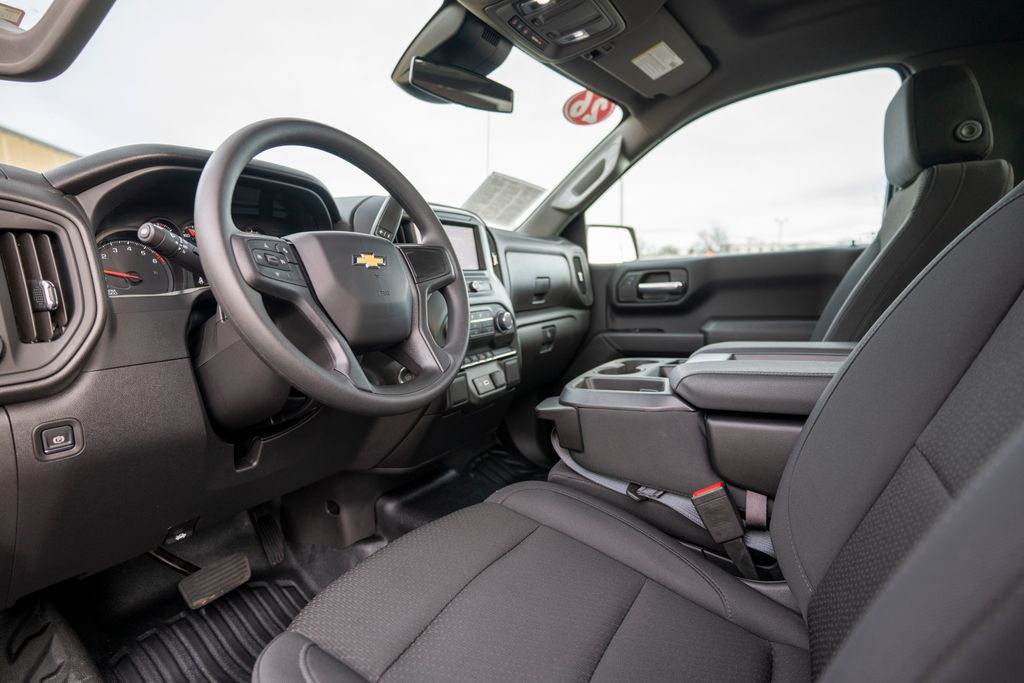 Preferred Equipment Group 1WT (3.5" Monochromatic Display Driver Info Center, 4-Way Manual Driver Seat Adjuster, 40/20/40 Front Split Bench Seat, Black (Semi-Gloss) Front Bumper, Black (Semi-Gloss) Rear Bumper, Bluetooth® For Phone, Electronic Cruise Control, Front Frame-Mounted Black Recovery Hooks, HD Rear Vision Camera, Heated Power-Adjustable Outside Mirrors, Inside Rearview Mirror with Tilt, Locking Tailgate, Manual Tailgate Function with No EZ Lift, Manual Tilt Wheel Steering Column, OnStar Services Capable, Power Front Windows with Driver Express Up/Down, Power Front Windows with Passenger Express Down, Remote Keyless Entry, Rubberized-Vinyl Floor Covering, SiriusXM Delete, Solar Absorbing Tinted Glass, Standard Tailgate, Teen Driver, Tire Pressure Monitoring System, Vinyl Seat Trim, Wheels: 17" x 8" Ultra Silver Painted Steel, and Wi-Fi Hot Spot Capable), Standard Suspension Package, Trailering Package (Hitch Guidance), Work Truck Package (Heavy-Duty Air Filter), WT Convenience Package (Deep-Tinted Glass and Electric Rear-Window Defogger), WT Value Package, 10-Speed Automatic, 4WD, Jet Black w/Cloth Seat Trim, Apple CarPlay/Android Auto, 170 Amp Alternator, 2 Speakers, 2-Speaker Audio System, 220 Amp Alternator, 4-Wheel Disc Brakes, ABS brakes, Air Conditioning, Auto High-beam Headlights, Auto-Locking Rear Differential, Automatic Emergency Braking, Auxiliary External Transmission Oil Cooler, Brake assist, Chevytec Spray-on Black Bedliner, Compass, Delay-off headlights, Driver door bin, Dual front impact airbags, Dual front side impact airbags, Electronic Stability Control, Emergency communication system: OnStar, External Engine Oil Cooler, EZ Lift Power Lock and Release Tailgate, Following Distance Indicator, Forward Collision Alert, Front anti-roll bar, Front Center Armrest w/Stora